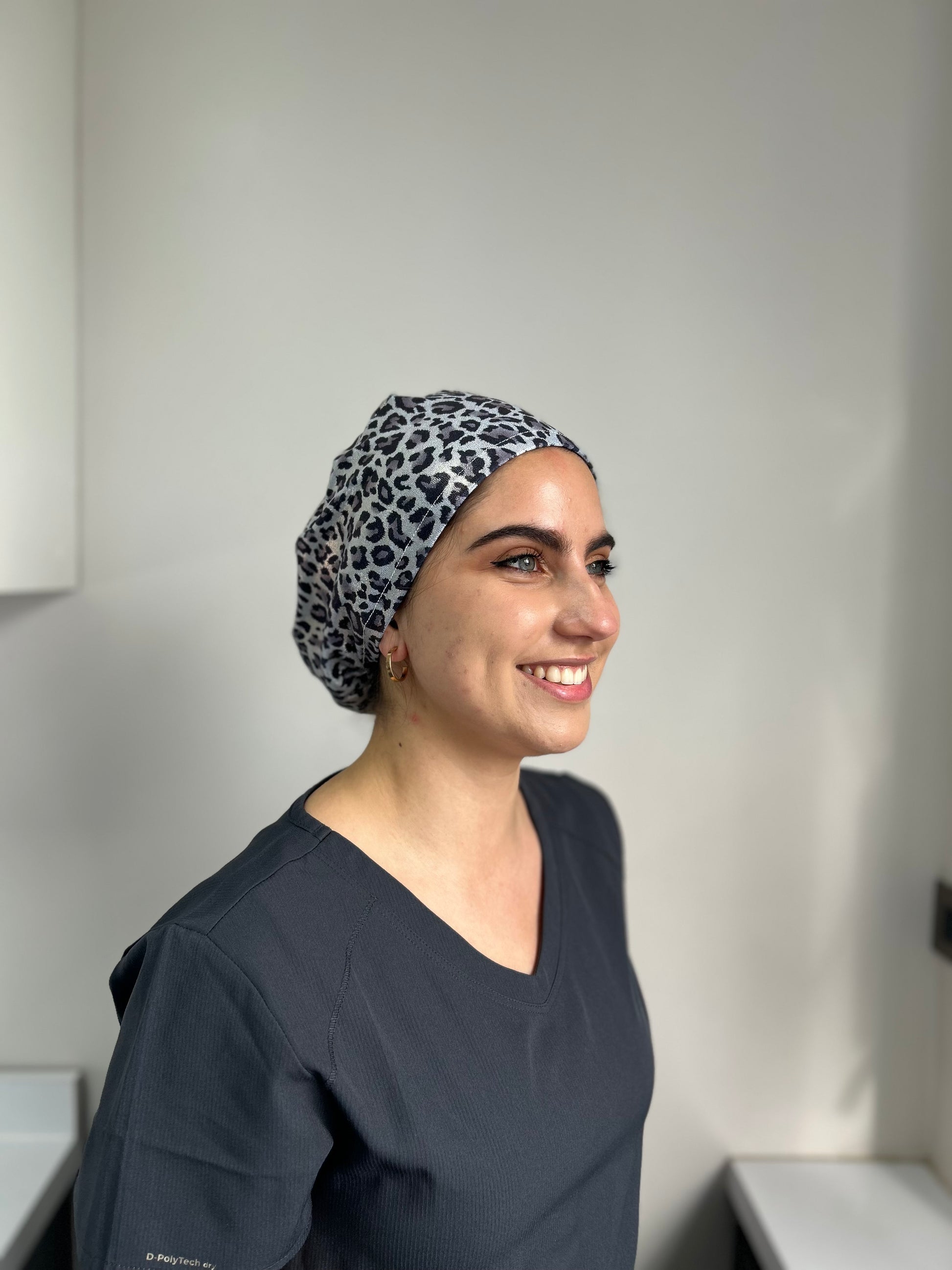 Cofia gris brillo print negro